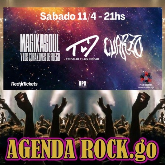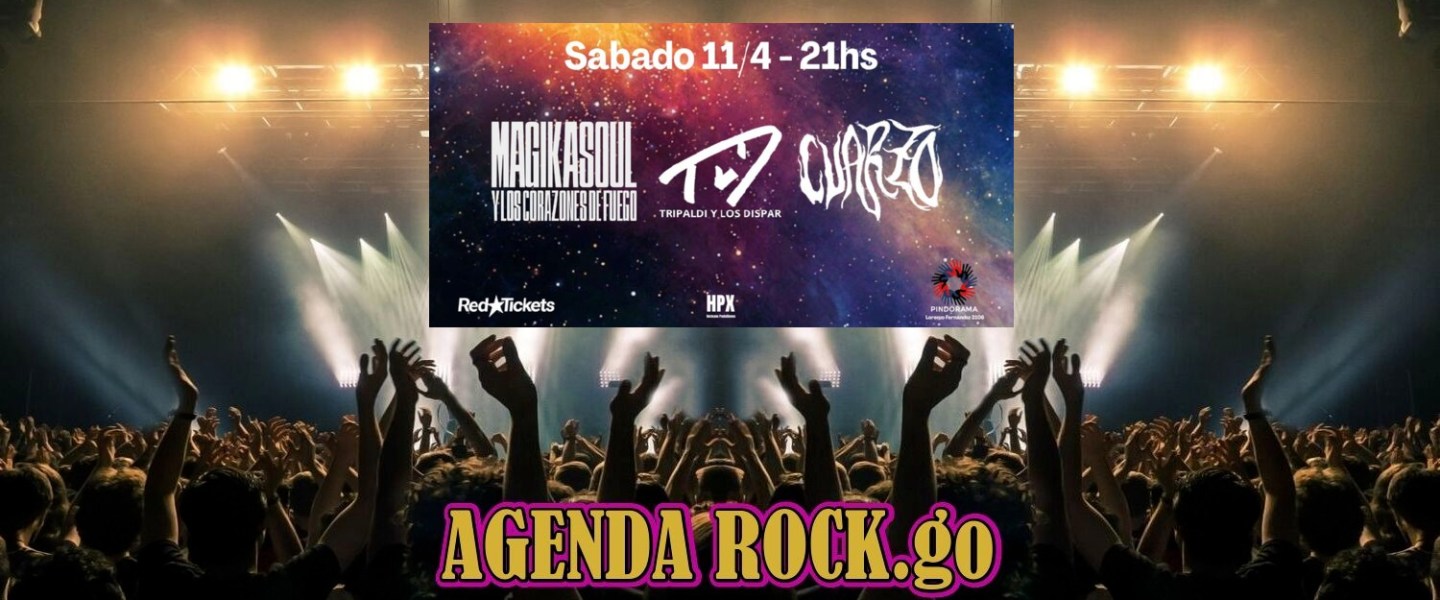 El sábado 11 de abril a las 21 horas se estarán presentando tres bandas en Pindorama (Lorenzo Fernández 3106): MagikaSoul y Los Corazones De Fuego, Tripaldi y Los Dispar y Cuarzo. Tres propuestas diferentes aunadas en un espectáculo imperdible.