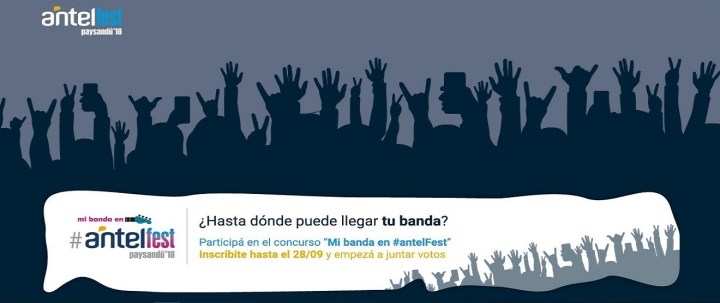 Antel fest Paysandú ’18 en 18 septiembre, 201818 septiembre, 2018 Antelfest Paysandú ’18 Volvió Mi banda en #antelFest! Inscribite, subí tu video y votá a tu favorito. Las 2 bandas más votadas participarán de la edición N° 11 de Antel Fest. Podrás compartir el escenario con grandes artistas. Comparte esto:Tweet Compartir en Instagram (Se abre en una ventana nueva) Instagram Compartir en Reddit (Se abre en una ventana nueva) Reddit Compartir en WhatsApp (Se abre en una ventana nueva) WhatsApp Me gusta Cargando...