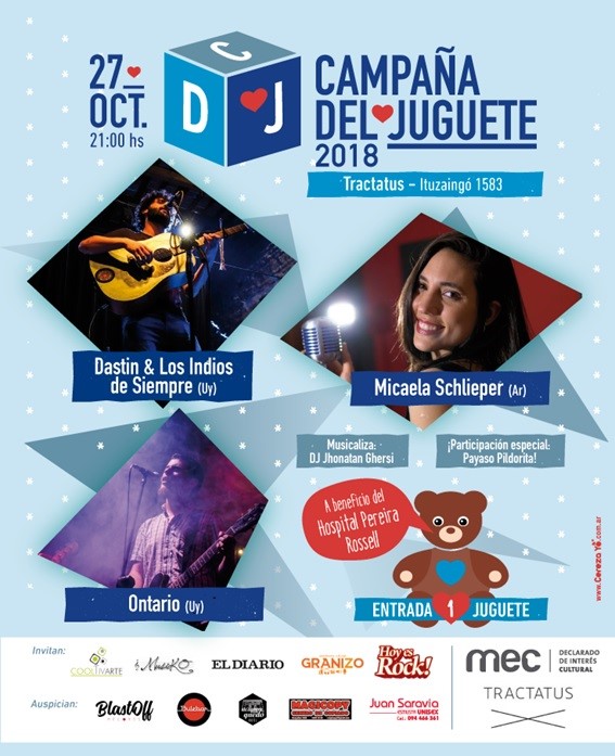 Los locales Ontario con su sonido rock y post rocky y Dastin & Los Indios de Siempre junto a la cantautora argentina Michaela Schlieper, son los encargados de abrir la segunda etapa de la edición 2018 de la Campaña Del Juguete.
