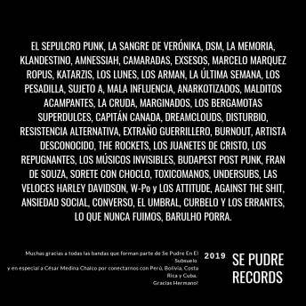 La edición del Volumen 3, que es la que nos ocupa en esta oportunidad, está plagada de muy buenos ejemplos de bandas punk. No sería justo destacar algunas sobre otras. Primero porque nos parece que el nivel es muy parejo, y segundo porque también entendemos que es importante apreciar todos los trabajos en conjunto, más allá de sus diversos orígenes. Así que la invitación es a repasar todos y cada uno de los temas varias veces, reconfortándose de sumergirse en el rock verdadero, aquel que lejos de estar desahuciado, vive y lucha en cada rincón del planeta donde haya gente con ganas de divertirse y de gritar su verdad. Además de lo excelente de la idea, cabe destacar la muy buena presentación y sonido del compilado. Se Pudre en el Subsuelo Volumen 3 (1º de enero 2019) lo pueden escuchar en: