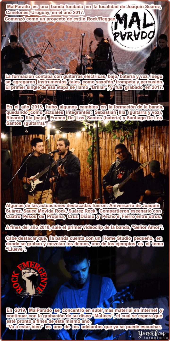 MalParado en 20 agosto, 20197 diciembre, 2022 REDES SOCIALES DE MALPARADO: PRÓXIMA PRESENTACIÓN EL 31 DE AGOSTO LA BANDA SE PRESENTA EN PANDO. Comparte esto:Tweet Haz clic para compartir en Instagram (Se abre en una ventana nueva) Instagram Haz clic para compartir en Reddit (Se abre en una ventana nueva) Reddit Haz clic para compartir en WhatsApp (Se abre en una ventana nueva) WhatsApp Me gusta Cargando...
