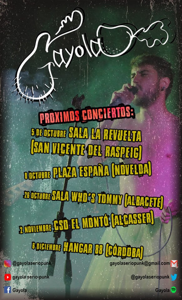 Desde el sur de España, un nuevo envío de rock desembarca en nuestro blog con un cargamento de música serio-punk, descargada por la banda Gayola. Presten sus oídos a lo que esta gente tiene para cantar y tocar.