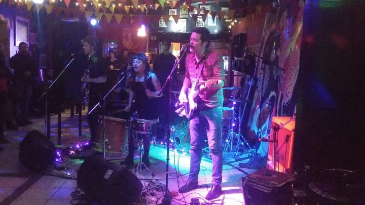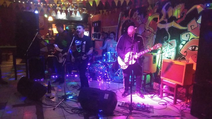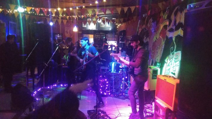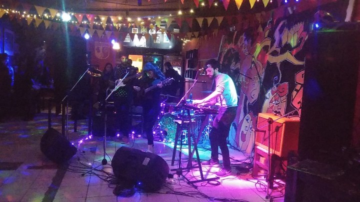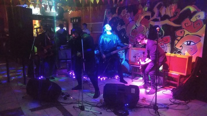 A posteriori subió a escena el grupo Lynces, banda que se armó en el 2016, conformada por Loly en guitarra y voz, Diego en la otra guitarra, Sofía en la batería y Gabriel en el bajo. Tienen un estilo musical Indie, post punk de un Rock duro como para poguear y peludear, con guitarras fuertes y distorsionadas. Levantaron mucho el volumen del Rock y la exacerbación no se hizo esperar, a pesar que llevábamos varias horas dentro de la cantina escuchando música. Pero eso no hizo dudar a los presentes ni claudicar en las ganas de saltar y bailar.