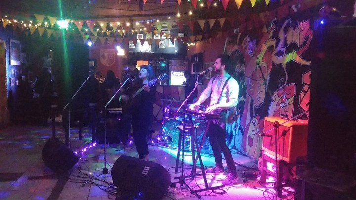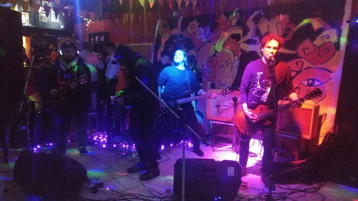 A posteriori subió a escena el grupo Lynces, banda que se armó en el 2016, conformada por Loly en guitarra y voz, Diego en la otra guitarra, Sofía en la batería y Gabriel en el bajo. Tienen un estilo musical Indie, post punk de un Rock duro como para poguear y peludear, con guitarras fuertes y distorsionadas. Levantaron mucho el volumen del Rock y la exacerbación no se hizo esperar, a pesar que llevábamos varias horas dentro de la cantina escuchando música. Pero eso no hizo dudar a los presentes ni claudicar en las ganas de saltar y bailar.