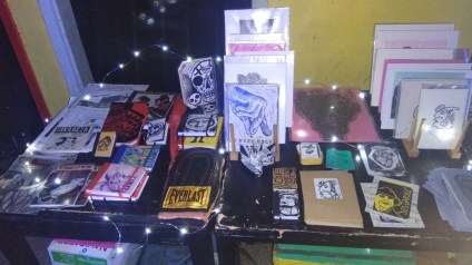En ese pequeño lapso de tiempo, la organización nos tenía preparados una serie de entretenimientos para distraer la mente, despejar la ansiedad y saciar la sed y el hambre. Un muy oportuno disc jokey amenizaba la noche. Se habían dispuesto también varias mesas con merchandising de las bandas, sus discos y/o EP de aquellas que lo tuvieran.