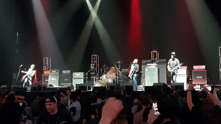Hubo canciones para todos los gustos, en una recorrida impresionante por la discografía de la banda, respetando el sonido y la concepción original de cada uno de los temas. Fueron nueve bloques de entre cuatro y seis temas, que estuvieron entregados como ráfagas de bombas sobre el público que colmó el Antel Arena y que acompañó con cantos, saltos y bailes. Quizás los tres temas más coreados fueron “Gol en el campo”, “Ellos dicen mierda, nosotros amén” y “No somos nada”. Estos tres, entre muchos otros, tuvieron versiones apoteósicas. ¿Faltaron canciones? Por supuesto, pero no sobró ninguna.