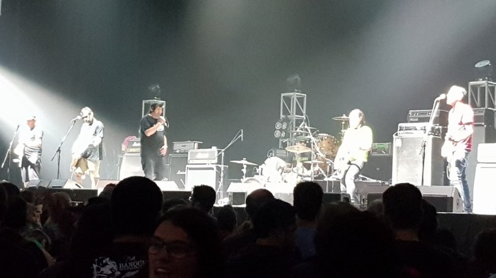 Dicho esto, hablemos del show. Por supuesto la apertura fue con “Salve”, como es habitual. Desde ese momento en adelante, fue un disfrute total por parte de todo el público. Una muy buena entrega de la banda que venía de su show en Argentina el día anterior, y que si bien se encuentra potenciada por “la sangre joven” de los actuales Gatillazo, el despliegue de los veteranos estuvo muy pero muy bueno, dejando todo lo que hay que dejar. Evaristo con sus alaridos y su humor, siendo siempre el centro de atención, como corresponde. Lo de este tío ya no tiene explicación, por lo que solamente queda disfrutarlo. Como siempre, las letras con todo su contenido político-social-cultural marcando el pulso de lo que estaba ocurriendo sobre y bajo el escenario. La banda sonando como se podía esperar, y creo que algo más también. Cada uno en su rol desempeñado a la perfección, siendo la base fundamental para que el todo se sostenga de una manera soberbia. Un muy buen sonido fue el compañero ideal para la fiesta del punk mundial. En definitiva, un conjunto de elementos que funcionó a la perfección.