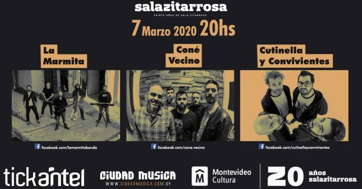 La Marmita, junto al proyecto de Coné Vecino y Santiago Cutinella con su banda Los Convivientes, se presentan en un show imperdible este próximo 07 de marzo en Sala Zitarrosa desde las 20 horas, donde cada uno realizará un repaso de sus recientes materiales discográficos.