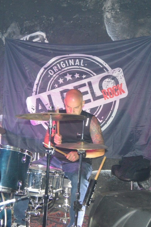 Tocó el turno de Alpelo Rock, los habíamos visto el año pasado y nos causó muy buena impresión, y queríamos confirmar la idea. Resultó que nos encontramos con una banda consolidada, una batería firme y con excelente sonido, un bajo con un muy buen ritmo y la guitarra en manos de quién parece ser el más joven de la banda, que toca con la experiencia de años. A todo eso se le suma la voz potente de Pablo Augusto Rodríguez. Tocaron temas propios y de próxima aparición en el disco Siempre Habrá Uno Más. Alpelo Rock se consolida como banda, y con mucha fuerza en su propuesta, efectiva y con canciones con contenido. Luego de realizar un repertorio de canciones propias como “El silencio”, “Celos” y “La soledad”, entre otras, también hicieron una versión de “Fiestas de la crema” de Los Traidores. Fueron invitados a subir al escenario el cantante de Cooper y Los Hombres Bestia, banda emergente de la ciudad de Las Piedras -nos referimos al joven Juan Weber, que tocó la guitarra y acompañó en el coro- y Gustavo Parodi de Los Chanchos. Esta combinación nos regaló versiones de temas de Los Estómagos, que nos retrotrajo a la década de los ’80, lo que provocó el coro de los espectadores.