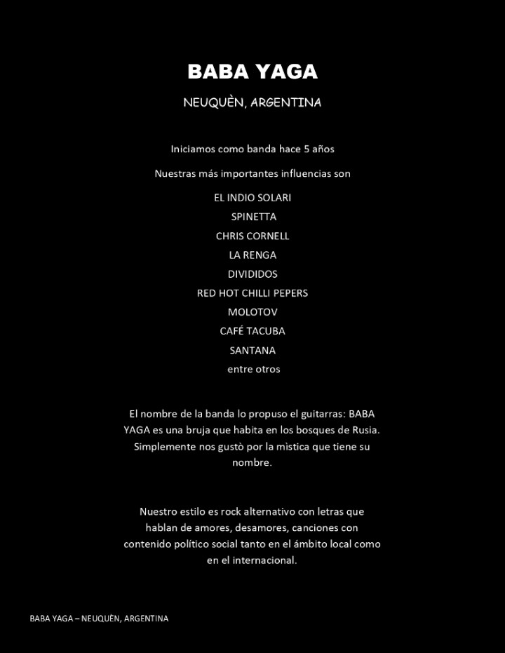 Baba Yaga en 30 marzo, 202030 marzo, 2020 Desde el centro de Argentina, más precisamente de Neuquén, Baba Yaga nos contacta para brindarnos la posibilidad de conocer su material. Así que los dejamos con ellos, para que se presenten. Enlaces de la banda: Comparte esto:Tweet Haz clic para compartir en Instagram (Se abre en una ventana nueva) Instagram Haz clic para compartir en Reddit (Se abre en una ventana nueva) Reddit Haz clic para compartir en WhatsApp (Se abre en una ventana nueva) WhatsApp Me gusta Cargando...