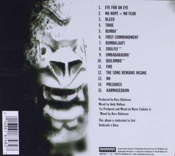 El disco arranca con la potencia necesaria como para depilarte cualquier vello corporal que esté cerca de tus oídos… Ya desde el segundo 0:12 de la canción que abre el disco, “Eye for an eye”, Max y sus socios dejan en claro cuál será el hilo conductor de la placa: la fortaleza. En primer lugar, el grupo ya está sentando las bases de las palcas que vendrían en años posteriores, dejando en claro por dónde irán estos muchachos.