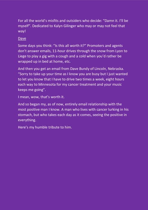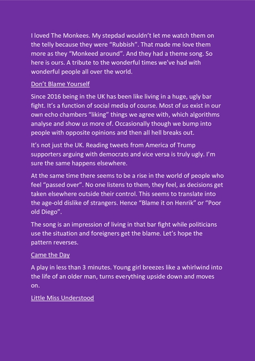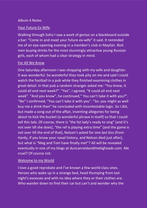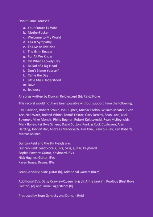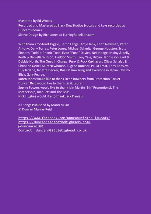 Duncan también tuvo el detalle de enviarnos los créditos del disco, un video, las notas y las letras de los temas, toda información que incluimos a continuación porque nos parece un complemento fundamental de lo conversado en el rockportaje y un excelente acompañamiento a la hora de escuchar el disco.