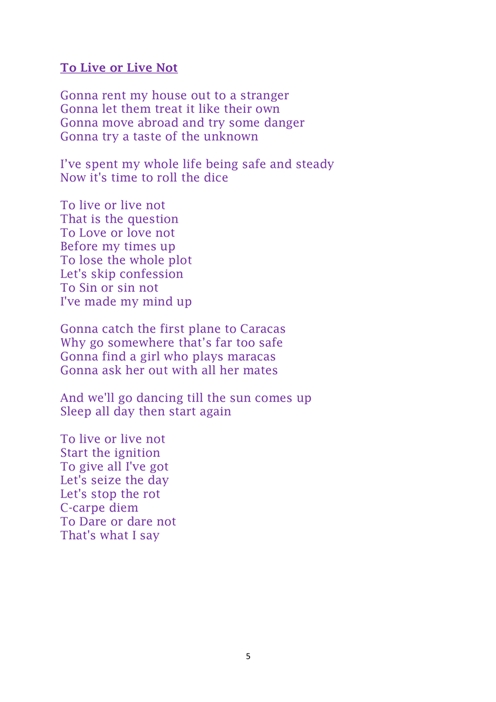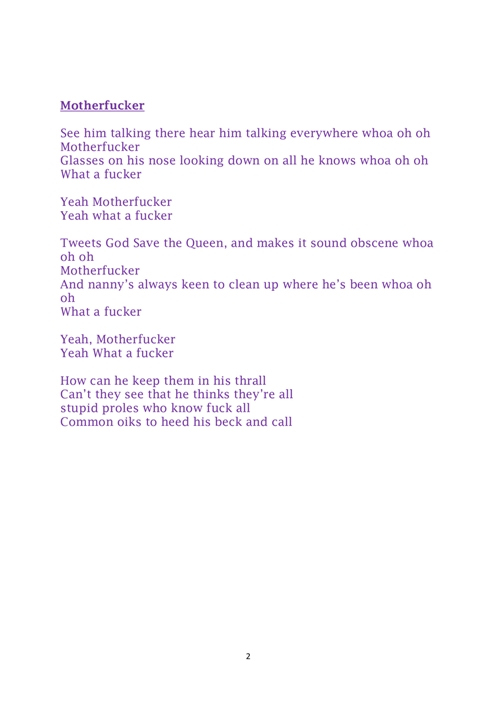 El disco destila los mejores sonidos para oídos que necesitan saber que el rock nunca morirá, confirmándolo cuando “Motherfucker” deja su introducción atrás. Los temas se siguen sucediendo, con calidad pareja, rebozando frescura. Si bien la calma llega con “Tea & sympathy”, sirve de puente para volver a la orilla del rock más enérgico con “To live or live not”, un gran tema.