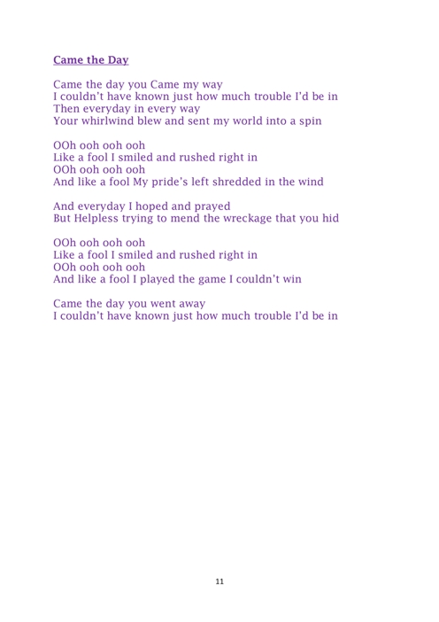 Duncan: Grabamos baterías y guitarras en un estudio, pero todas las voces y teclados se grabaron en mi casa. Escribo las canciones y envío los demos a la banda, pero agregan su personalidad a las canciones.