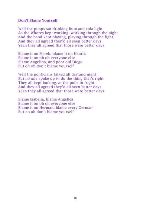 Duncan Reid es una inagotable fuente de buena música rock. Las esperanzas se siguen renovando al escuchar Don’t Blame Yourself, una lección de cómo hacerlo simple y muy bien. Oficio, que le dicen, o quizás el toque de un hombre que en base a experiencia, buen gusto y ganas, sigue adelante entregando lo mejor de sí.