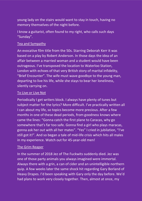 Duncan: Sí, hay. Tocan en pubs y clubes (o solían hacerlo antes del Coronavirus).