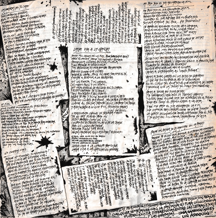 La contratapa del vinilo que escucho mientras escribo esta nota es totalmente disfrutable, con mucho humor, como era de esperar, acompañando la propuesta toda. La hoja interna tiene todas las letras y, como sugerencia un cuadrado en blanco correspondiente a “El presidente”. Genial. Una señal al futuro con un guiño al pasado.