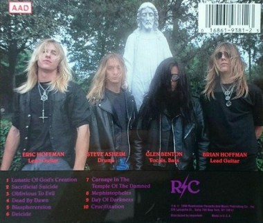 A los efectos informativos, Deicide (en español significa “el que da muerte a Dios”) es una banda formada en Tampa Bay, Florida, EEUU en 1989, por el vocalista y bajista Glen Benton, los hermanos y guitarristas Eric y Brian Hoffman, y el baterista Steve Asheim. En verdad los músicos sin Benton ya estaban juntos formando la banda Carnage desde 1987. La historia luego continua con que Benton publica un aviso para formar una banda y Eric Hoffman respondió al mismo para unirse, en un principio bajo el nombre de Amon y editar su primer EP en 1987, denominado Feasing the Beast. Unos años después, en 1989, editaron su segundo EP, Sacrificial. Luego, por consejo del sello Roadrunner, decidieron cambiar el nombre de la banda por Deicide.