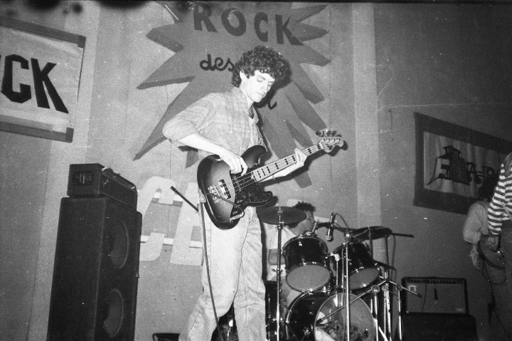 Enrique: Poquito antes. Luz Roja fue la primera banda que tocó en un escenario con un staff de grupos de canto popular. Tocamos después de Washington Carrasco y Cristina Fernández en un recital de la UJC que se hizo en el Velódromo, que estaba lleno. Nos pusimos a todo el mundo en el bolsillo, estuvo genial. Eso no está en ningún libro de rock uruguayo, pero bueno… vos lo vas a poner ahora (risas). Después se dieron varios eventos y cosas importantes. Con la formación de Jean Paul Ibargoyen, César (Martínez), el Quieto y yo, hay una foto interesante que estamos en el callejón de la Universidad, y en el público está la gente de ADN, de Zero, todos de aquella camada de los ’80. El sonidista no tenía ni la más puta idea, porque pensaba que iba a ser como una especie de murga, y había puesto seis micrófonos adelante. De todas maneras creo que dejó su enseñanza, y algunas pocas bandas de aquella camada, como Níquel, Los Traidores, Buitres (que antes eran Los Estómagos) fueron los que quedaron porque hicieron las cosas mejor, porque pudieron trabajar en forma más profesional. Los demás nos quedamos por el camino, y la culpa la tuvimos los músicos.