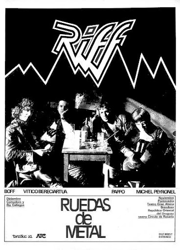 …en los diarios y algún pasacalle anunciaban la llegada de un nuevo grupo desde Argentina liderado por un ya conocido en Uruguay. Norberto Napolitano. Pappo. «Adiós Pappos Blues – Bienvenido Riff». Año ’81. Bien para marcar la diferencia (como decir «no queremos hippies, queremos una nueva generación») que era justamente lo que se venía en los años finales de la dictadura y con nuevos estilos, entre ellos el Heavy Metal donde Riff sería la banda pionera en ese país. Pappo junto a Vitico y Michel tenían muy en claro lo que querían hacer, y la mezcla final de los 4 es detonadora. Habían estado viviendo sus experiencias, viendo esas nuevas tendencias que ya estaban en Europa y EE.UU., el carpo alucinado con Black Sabbath y Motörhead (del cual incluso pudo ser parte cuando recién se estaban armando) en fin, esto no es solo Pappo, esto es una propuesta nueva, fresca, dura. Habían tenido una experiencia con un vocalista que no duró dos toques, aunque sobre el final de la carrera de la banda, estuviese presente nuevamente en sus filas en la parte de coros. Gran tipo Juan García Haynes.