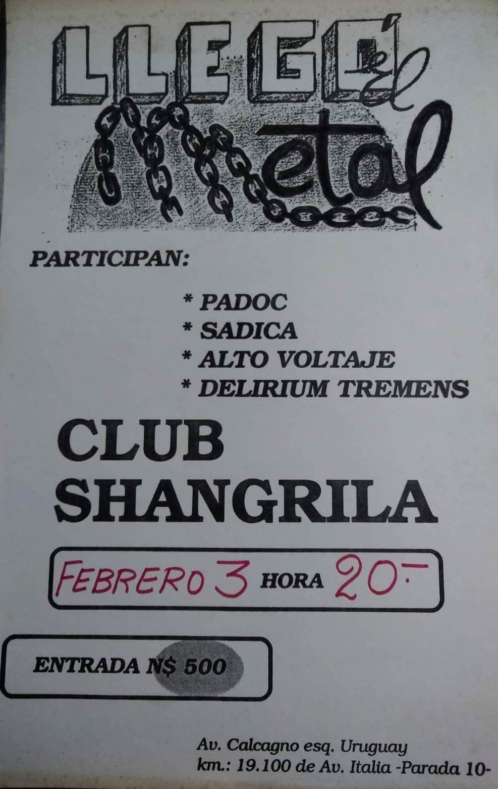 Carlos: Allá por los ’80s había mucha movida de rock and roll subterráneo en el Parque Posadas. Un local con pool y maquinitas de juegos de la época, invitaban a que los jóvenes que rondábamos por allí encontráramos un reducto donde intercambiar músicas que no eran precisamente las que sonaban en las radios. Era un sitio que siempre estaba a tope, ya que la cercanías con los liceos 18, IBO y Bauzá nutrían continuamente de clientes aquel sitio que se convertiría en un bar de copas, donde a la postre, comenzarían toques debido a la cantidad de grupos en la zona, entre ellos Nostradamus. Yo era estudiante en el liceo 18, pasaba cada día por aquel local donde compartía alguna conversación con gente habitué: El Pachorra, El Funfu, El Völker, etc. En aquel “Bar” llegó a instalarse una edición de El Templo del Gato, y a la postre terminé siendo bajista de Los Blues Callejeros, grupo soporte del Gato Eduardo junto a Alejandro Pinnejas en guitarra y Mario Azcani en batería. Allí un día se acercó Ricardo “Tucho” Bonelli, que tenía vinculo con “El Völker”. En aquel momento yo tocaba en Ciclo Lunar, un trío muy experimental donde aplicaba artilugios que extrapolaba desde mis escuchas de Steve Harris, Roger Glover y Geezer Butler. Delirium Tremens, grupo creado alrededor de aquellos meses, estaba teniendo algún problema de integración con su bajista Ronald Bustos (músico que de alguna manera ponía orden a un enorme flujo creativo). En aquella conversación, (yo diría muy diplomática) Tucho me preguntaría sobre mi formación y más que nada hacía hincapié a mi experiencia, ya que yo era un adolescente de 17 años interesado en bucear en un océano profundo que era la cultura rock en una post-dictadura que enfrentaba mucha resistencia social.