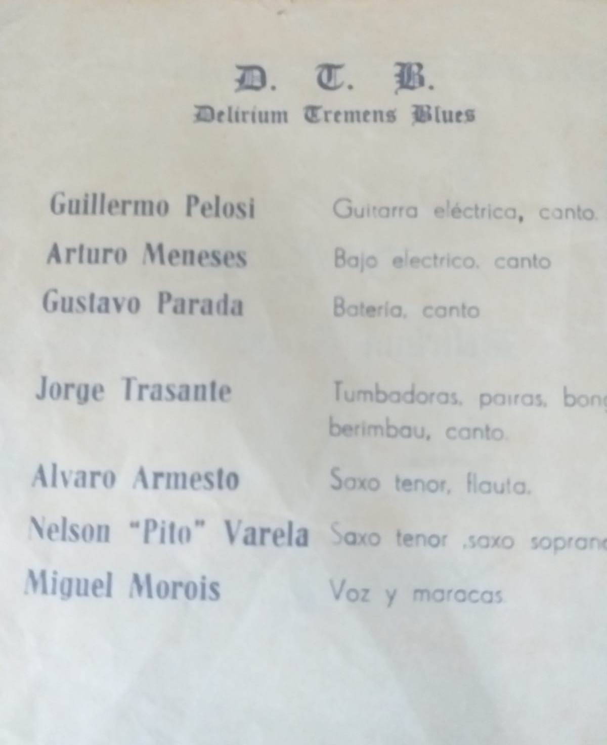 Arturo: En la primera etapa perteneció a una generación que fue arrasada por la dictadura y de la cual no quedan registros grabados, pero que fue muy activa. Con Tucho usamos el nombre Delirium Tremens Blues, el blues hacía la diferencia. Escuchábamos bandas como Cream, John Mayal, Hendrix, y era nuestra influencia en lo que tocamos. Creo que nuestra generación fue bastante ignorada en su principio. Una lástima porque fue una época llena de anécdotas y aventuras musicales.