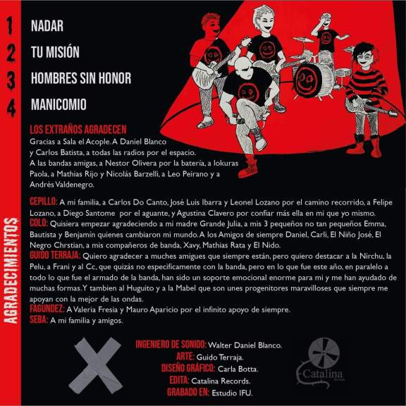 Los Extraños nos hacen llegar su reciente edición discográfica: un EP de cuatro temas donde la tónica dominante es el sonido punk. Fue grabado en sala El Acople y Estudio IFU por Daniel Blanco, y editado en forma física y digital por Catalina Records. Es el primer trabajo discográfico de la banda, y en él queda muy claro cómo viene la mano.