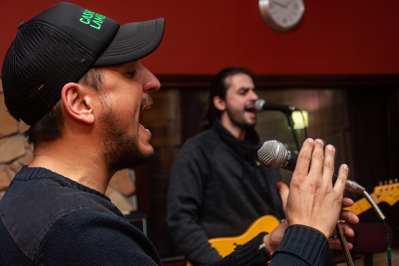 Andrés: Yo y Andrés Espina, que es el guitarrista que también canta en algunas canciones. Él canta muy bien y tiene su impronta, además de tener otro matiz de voz. Siempre estamos cantando los dos, cuando uno canta, el otro hace los coros.