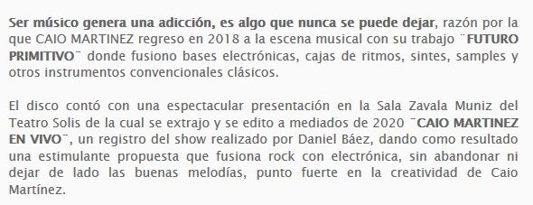 Caio Martínez continúa produciendo música y canciones. Su energía creativa nos regala ahora un nuevo sencillo, inspirado y potente desde su nombre: «Niebla púrpura», donde participan Caio Martínez en voz, Gastón Lorenzo en batería y José Luis Yabar en guitarras y bajo.