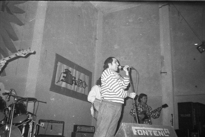 César: Somos un grupo teatrero. En el Anglo tocamos nueve veces; en varios lugares al aire libre, por ejemplo el 1° de mayo del ’85 tocamos en el callejón de Tristán Narvaja. Experiencias lindas en la calle. También en tres actos políticos. En uno andaban por las 200.000 personas, y ahí tuvo el grupo la oportunidad de probarse en vivo con mucha gente.