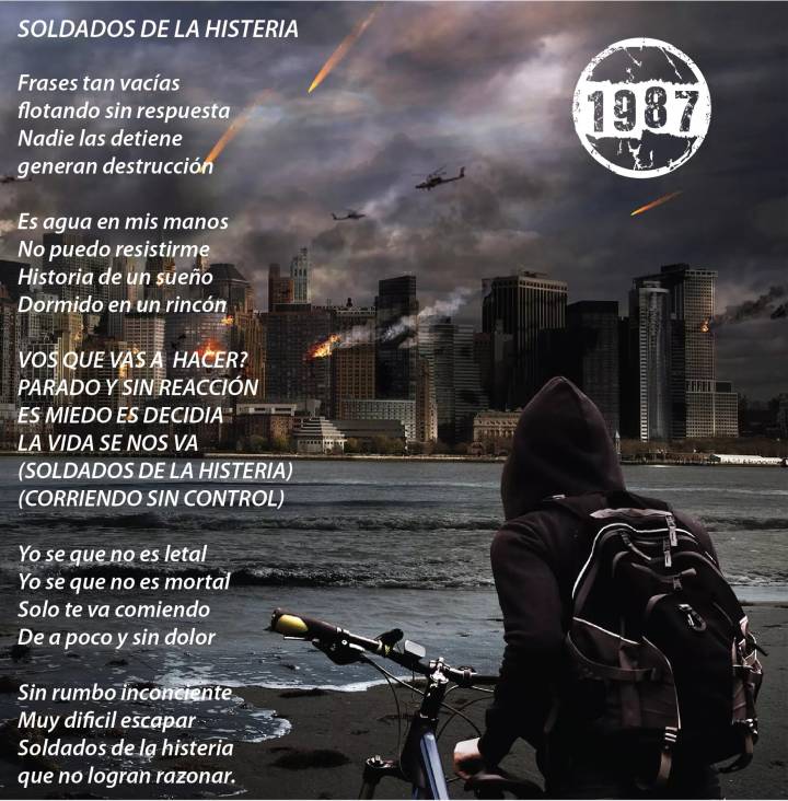 1987 es uno de esos grupos que cuentan en sus filas con figuras de trayectoria. A Pablo Rodríguez en bajo y voz, Hugo Gutiérrez en batería, Gabriel González en guitarra y Agustina Da Silva en voz, se le suman invitados de lujo, como lo son Fabián «Hueso» Hernández en piano y coros (en “Soldados de la histeria”, “Algo anda mal” e “Inmortal”), Fabián Curbelo en voz y coros (en “Algo anda mal”) y Marcelo Curbelo en coros (en “Algo anda mal”). Un plantel de lujo para llevar adelante esta propuesta que no se queda exclusivamente en lo retro, sino que lo redimensiona y lo lanza con integridad, respeto y música de calidad.