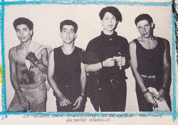 Jack: Lo conocí a principios de 1986. Yo vivía hacía años en Europa, donde hacía música y estaba muy colgado con el new wave y el post punk, grupos tipo The Cure, Siouxsie, Joy Division, Bauhaus, Sisters of Mercy, Allien Sex Fiend, Killing Joke y también cosas tipo Bowie, Iggy Pop, etc. Alejandro ya tocaba en Traidores y lo conocí prácticamente ni bien llegué a Uruguay, ya que yo me había sumado como vocalista a Zona Prohibida, y en ese momento la mayoría de las bandas que surgieron post dictadura eran bandas amigas. Nosotros ensayábamos en la embajada de Polonia, ya que Marek, uno de los integrantes de Zona Prohibida, era el hijo del agregado comercial de la embajada, y muy seguido venían a los ensayos Los Traidores, la gente de Neoh 23, de Zero etc. Yo pegué especial buena onda con Alejandro y de ahí quedamos muy amigos. Al poco tiempo abrí un local de ropa punk/new wave en la galería Libertador que se llamaba Locure, y Alejandro vivía a dos cuadras de ahí, por Andes y Mercedes; entonces Ale se lo pasaba todo el día en el local o yo me tiraba a su casa. Ahí empezamos a hacer música juntos, y en un momento Alejandro se sumó a Zona Prohibida. De hecho él es quien toca la batería con nosotros en la ensalada Rock 2, o Graffiti II.