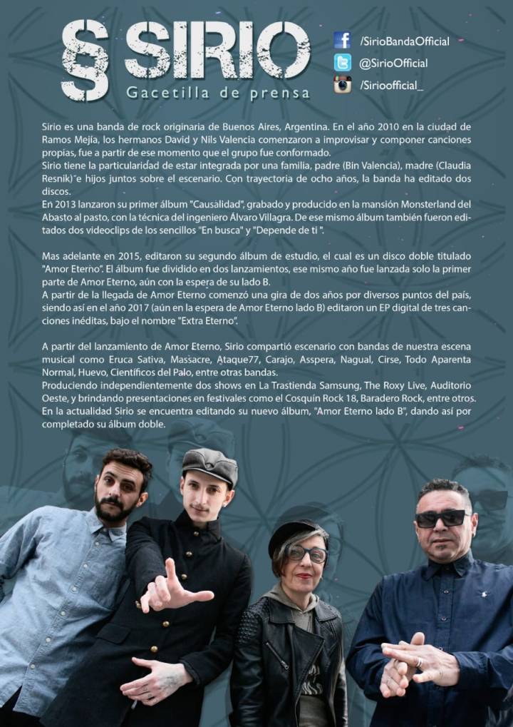 Se dice por ahí que el rock es una gran familia. En el caso de la banda argentina Sirio, el concepto se aplica literalmente. Más allá de ese gran detalle, suenan muy bien. Pasen a escuchar.