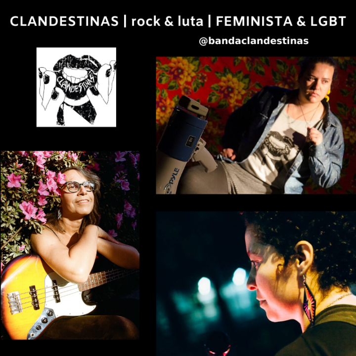 La banda Clandestinas surgió, en 2017, de la necesidad de hacerse oír en sus cuestionamientos sobre las normas de género y la sexualidad, utilizando la música como herramienta de lucha. Nosotras, Clandestinas, existimos, y junto a todas las mujeres, seguiremos molestando y gritando arte y lucha. Con nuestra música, nuestros cuerpos y nuestros afectos, luchamos contra el machismo, el patriarcado, el racismo, la LGTBfobia y todas las diversas formas de opresión estructural.