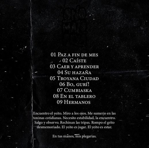 El inicio de “Bo gurí” en formato ska, se destaca como un tema enérgico y potente, muy original. Luego llega “Cumbiaska”, siendo la mayor sorpresa por el cambio de género… hasta que llega la mitad del tema y se transforma nuevamente. “En el tablero” es otro ska al inicio que casi imperceptiblemente va cambiando a lo largo de la canción, manteniendo la integridad. “Hermanos” marca el final del disco, redondeando un muy buen trabajo, dejando claro y definido el sonido de la banda. Energía puesta al servicio de la música, bien ejecutada y con una propuesta interesante.