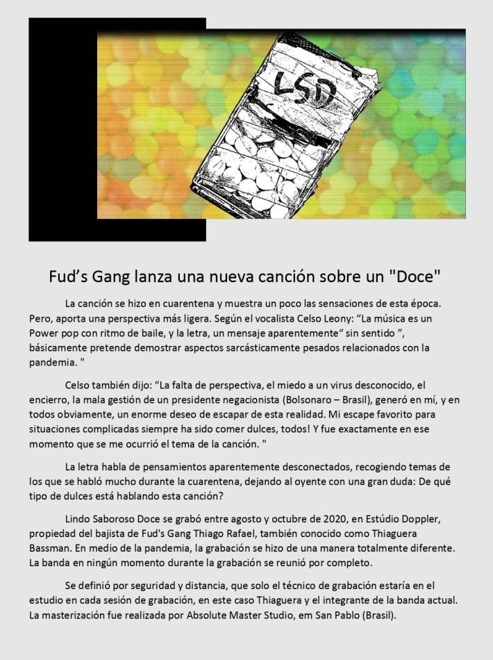 Muy buen rock con ese toque brasileño que tan bien le queda. La banda que introducimos hoy se llama Fud’s Gang, que presentan su último tema, “Lindo sabroso doce”. Y así suenan.