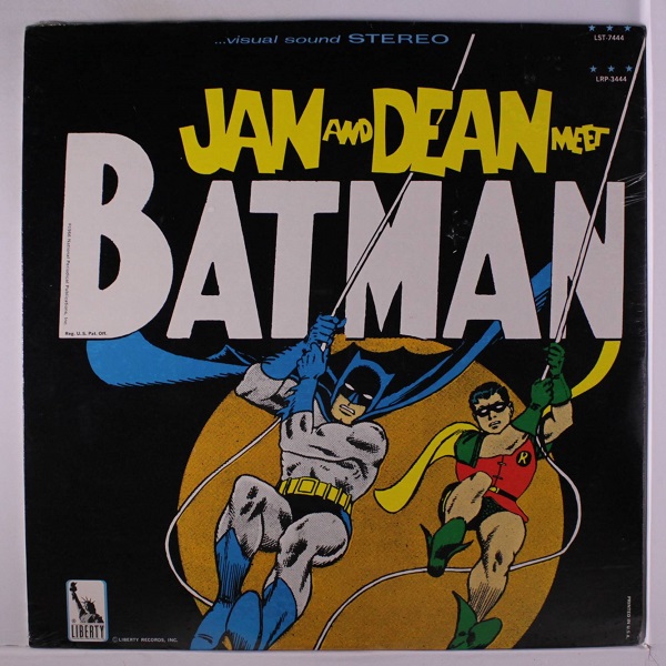 - Jan and Dean Meet Batman (1966) Disco del dúo de surf más importante de la historia, que se hizo eco del suceso lanzando un álbum con canciones totalmente dedicadas a la serie. Incluyendo su versión del Batmam Theme, y pequeñas piezas bizarras casi como radio teatros musicalizados con nombres como: Comedy routines, o The flight of the batmobile. Algún instrumental como Freeze, o canciones más estructuradas como The Joker is wild o el tema central llamado simplemente Batman, el más logrado de todos ellos.