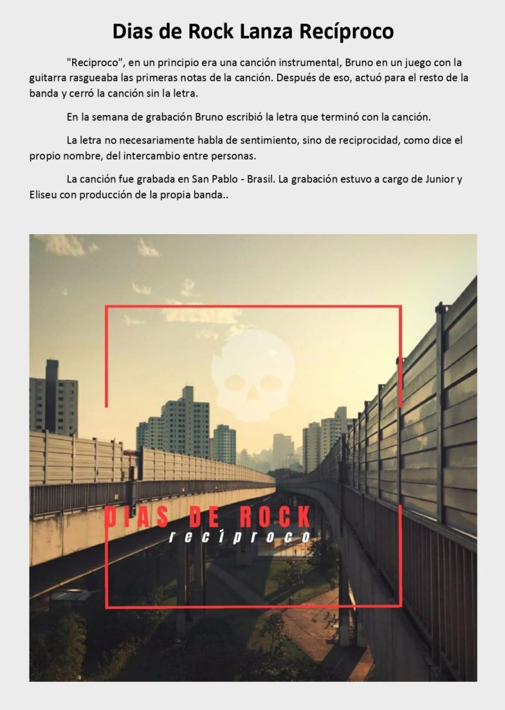 Brasil nos trae la banda Dias De Rock, con muy buenos sonidos rockeros. La excusa es la presentación de su canción «Recíproco», lo cual compartimos a continuación. Vean.
