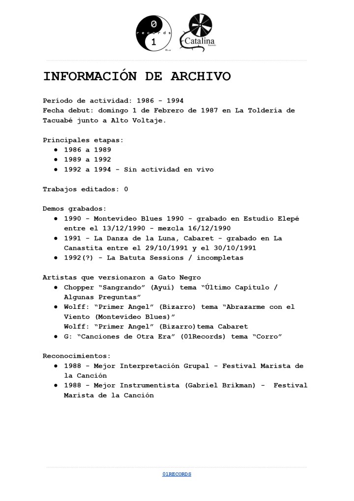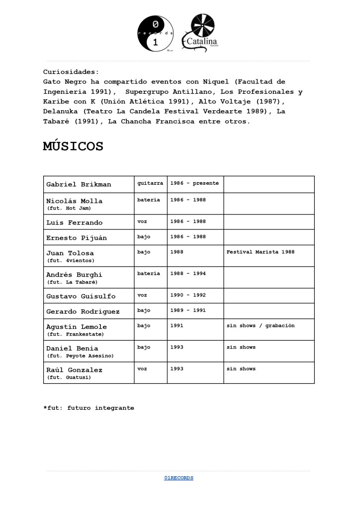 Gato Negro fue una banda que inició sus actividades a fines de la década de los ’80, presentándose en distintos espectáculos. En sus filas y como fundador, estaba Gabriel Brikman al frente de ese barco durante toda la existencia de la banda que, en esta segunda década del siglo XXI, vuelve a zarpar para acercarnos un Gato Negro revisitado.