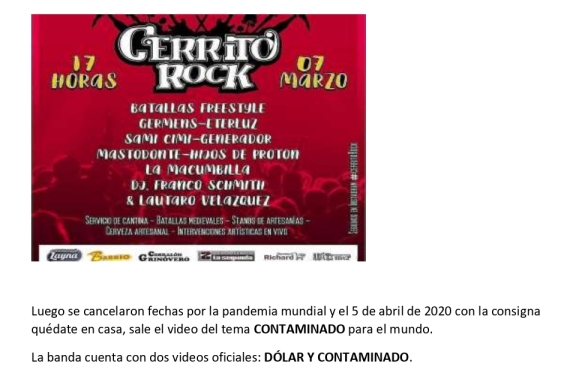 Recibimos una actualización de información de esta muy buena banda de Santa Fe. Se trata del último video, publicado el 5 de abril pasado, con el tema «Contaminado». Les dejamos el link para que lo disfruten.