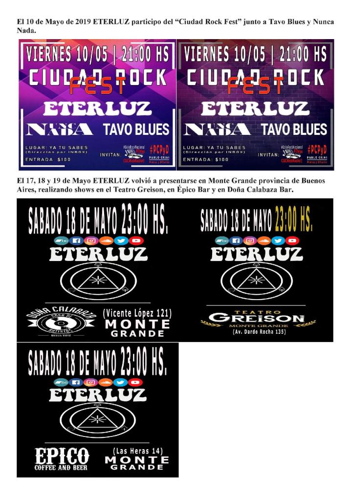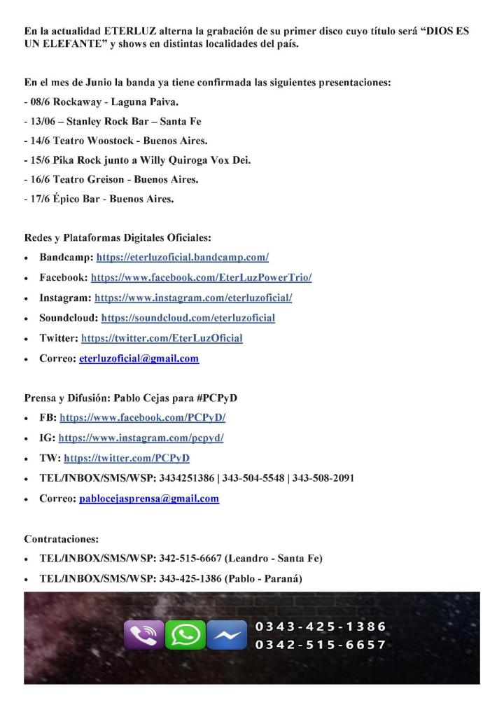 Nueva actualización de Eterluz, en la cual nos comparten su potente video grabado en vivo el 25 de julio pasado en la Sala 333 de Santa Fe. Compartimos e invitamos a ver.