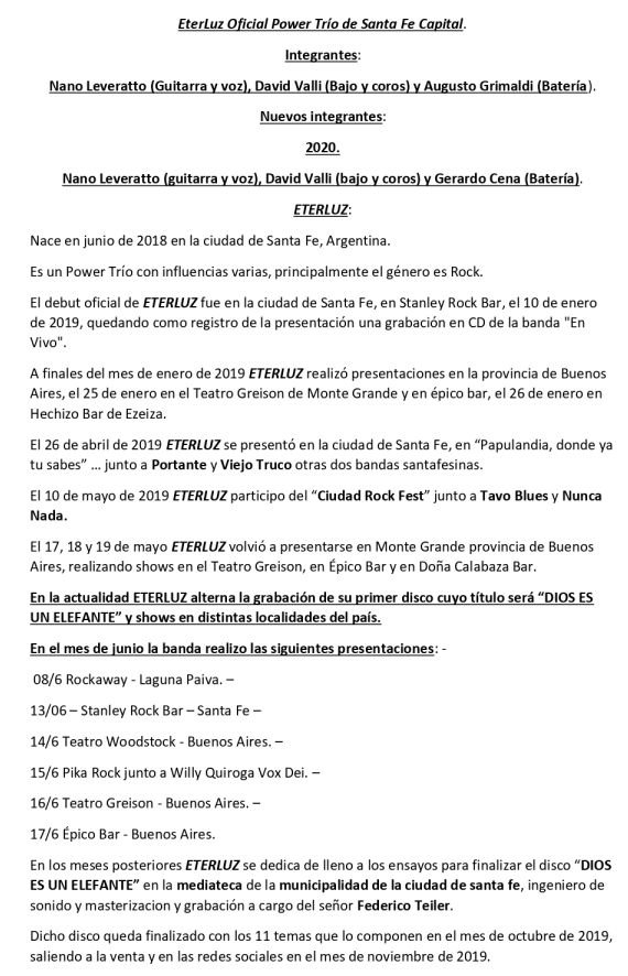 Desde la ciudad de Santa Fe, Argentina, nos llega la potente música de Eterluz, una banda conformada por tres músicos. Presten sus oídos para escuchar lo que se traen: mucho rock y del bueno.