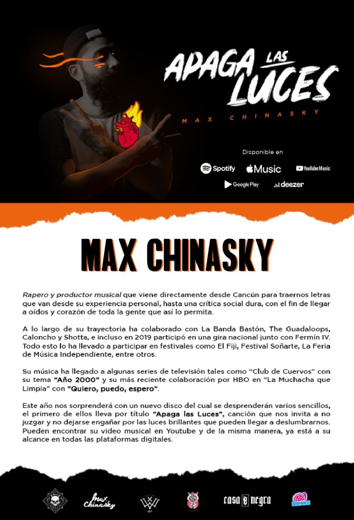 Más música de México, que nos llega a través de Max Chinasky. Presenta el video de su canción «Apaga las luces». Compartimos.
