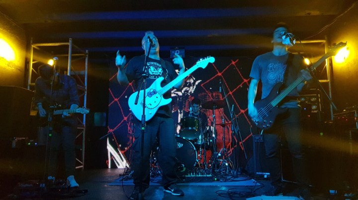 Ahora son cuatro músicos sobre el escenario para mostrarnos lo rico y variado de su propuesta y su música. Estrenando su Kitty guitar, Nacho Delgado fue el encargado de comandar la nave que nos llevaría por temas de sus tres discos. Un paseo por canciones potentes, que siempre sorprenden e impactan. Con la solvencia habitual de la banda, se pararon sabiendo lo que tenían que hacer… y lo hicieron. Sonaron “Nosotros estamos acá”, “Borracho en un camello” y “Dientes de tiburón”, intercalados con varios más. Excelente actuación, contundente, dejándolo todo por el bien de nuestro rock y de los que estábamos presentes. El escenario quedó calentito para que la próxima banda lo pisara.