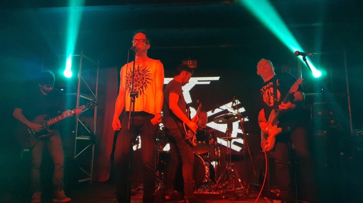 Abre la noche la enérgica banda punk El Umbral. Guitarra, bajo y batería a la orden para poner la fuerza necesaria a la propuesta. Sonaron felices y compactos, repasando varios temas de su repertorio, acompañados en esta oportunidad por el batero original. Clásico sonido de la banda, con letras interesantes y canciones rápidas. “Levantar”, “El momento” y “Cuesta ver” estuvieron en el repertorio, además de otras. Hubo tiempo para que Alejandro Núñez intercambiara palabras con su público, transmitiendo además su simpatía, como es habitual. Como broche de oro, la guitarra nuevamente voló fuera del escenario, con cariño pero con convicción. Una muy buena manera de entrar en calor en una noche que desde el flyer, prometía.