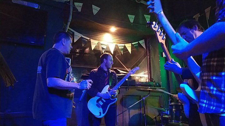 La banda nacional Easyband se presentó ese día y en ese lugar a dejar bien en claro que no hay encierro tan atroz, pandemia más cruel o frío y niebla de una noche inhóspita en la desolada ciudad de Montevideo, que no pueda ser anestesiada por un buen rock ‘n’ roll. Ante tal evento y al mejor estilo “perro rabioso” que lo sueltan por un instante, me di una escapada al encuentro de estos embajadores del mejor placer que por los orificios auditivos podés obtener.
