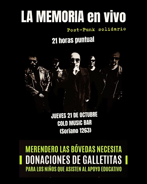 El show de La Memoria será puntualmente el jueves 21 de octubre a las 21:30 horas en Cold Music Bar, Soriano 1263.