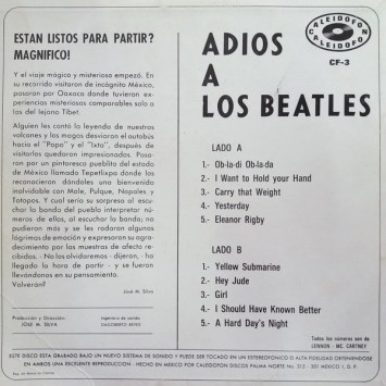 En 1971 La Banda Plástica De Tepetlixpa lanzó un curioso álbum titulado Adiós a Los Beatles, que consta de una decena de covers del popular grupo interpretados magistralmente por dicha banda.