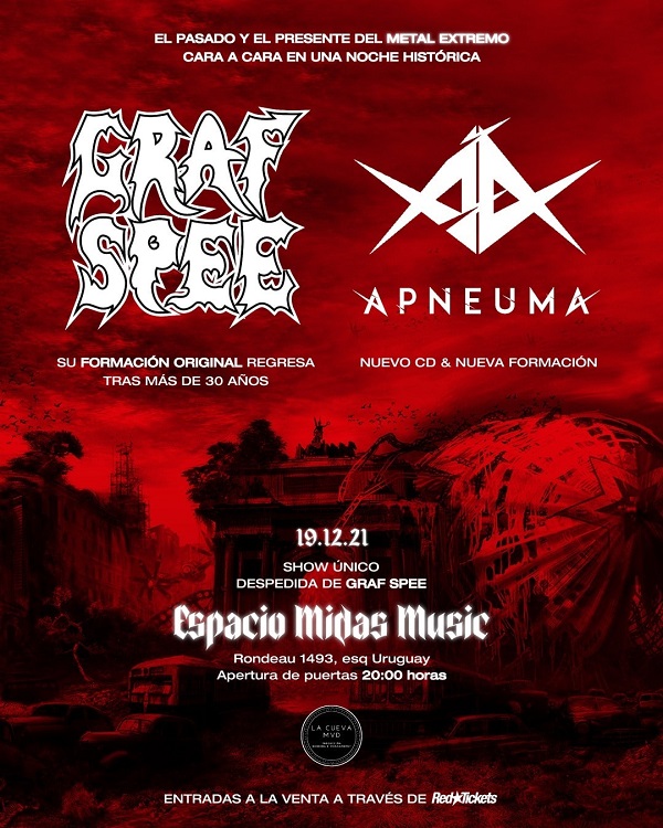 Luis: Cuando resolvimos que íbamos a tocar y más o menos teníamos una fecha, hablé con algunas bandas de acá y lamentablemente algunas no podían. Cuando hablé con Apneuma me dijeron: “¡Sí, vamos! ¿Qué fecha?”. “19 de diciembre”. “Me encanta”. Pum para arriba, con todo. La gente de Apneuma son unos amigos. Gerardo cantó con nosotros cuando vinieron los Cavalera y tengo muy buena relación con él. Otras bandas tenían problemas; parecía que volvíamos al ’89. Así que tocamos sólo con Apneuma. La verdad, queríamos hacer un toque un poco más grande, que fuera tipo un festival de bandas de metal con cuatro o cinco bandas y hacerlo en un lugar quizás más grande. Pero vimos que estaba un poco complicado y decidimos hacerlo con Apneuma, que se prendió de una. Aparte es un grupo que suena bien, están para presentar el nuevo formato de trío y tienen un disco para mostrar. Para ellos el toque es tan importante como para nosotros.