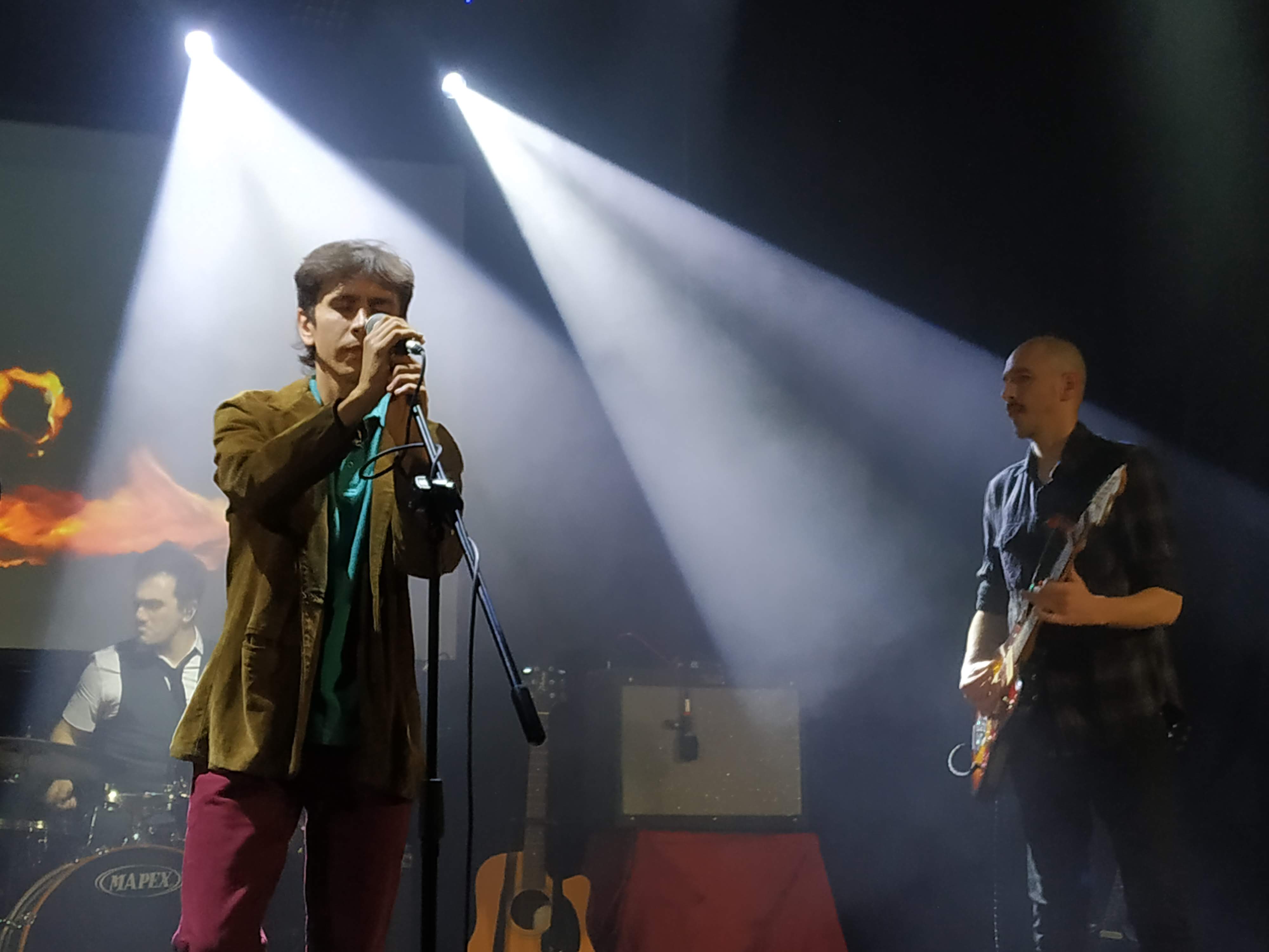 Un frontman que asume su responsabilidad sobre el escenario. Es el encargado de componer y de hacer llegar a la gente su mensaje a través de su voz y su cuerpo, adoptando posturas de relajamiento, tal cual se tratase de una clase de yoga. En algunos pasajes usó un megáfono, recurso que acostumbra a utilizar.